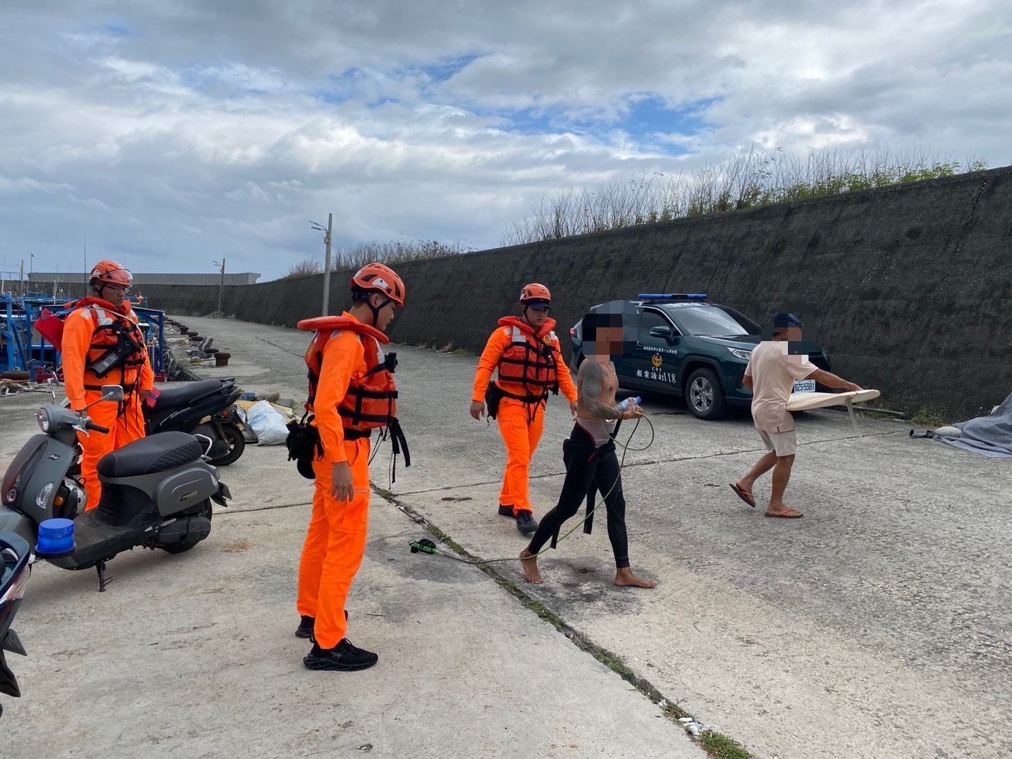 接獲通報後,本隊派遣金樽安檢所及第二機動巡邏站攜帶救生救難裝備趕往現場,並同步通報臺東縣消防局成功大隊東河消防分隊協處。經了解疑受風浪影響,被帶離岸際,導致體力不支無法返回,經海巡人員協調友好漁民駕駛「婷婷38號」漁船共同前往救援,最終成功救助上船並返回岸際,經救護人員評估無外傷,隨後民眾自行離開。