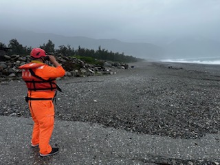 海巡署東部分署第一二岸巡隊呼籲:面對颱風等天然災害期間,應配合地方政府公告避災措施,切勿貿然進入公告警戒區域,以共同守護海岸安全,降低災害發生風險;如於海域或岸際發生任何急難救助情況,請立即撥打海巡免費服務專線「118」,本署將派員馳赴協助處理。