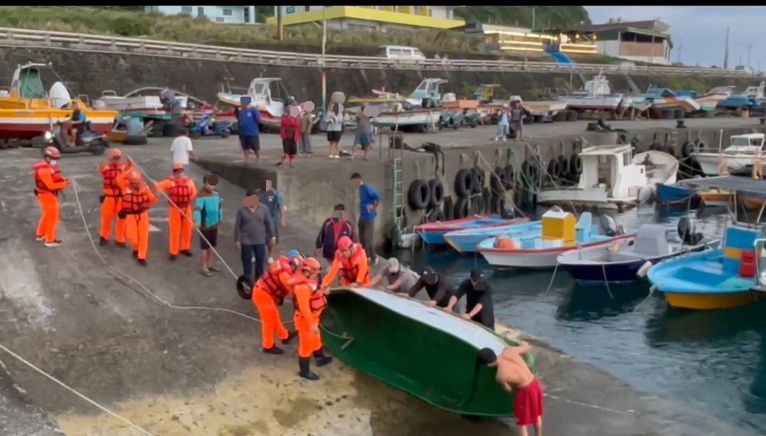 第一三岸巡隊獲報後立即派遣開元安檢所攜帶救援裝備前往搜救,另通報臺東縣消防局臺東大隊蘭嶼消防分隊協處;16時06分,海巡人員發現落海民眾2名,均有意識,隨即救援及攙扶上岸,並由現場消防分隊救護人員實施檢傷,送往至蘭嶼衛生所後續治療。