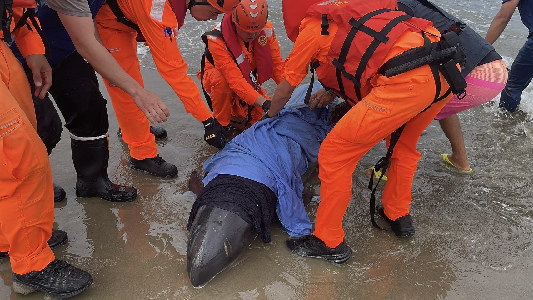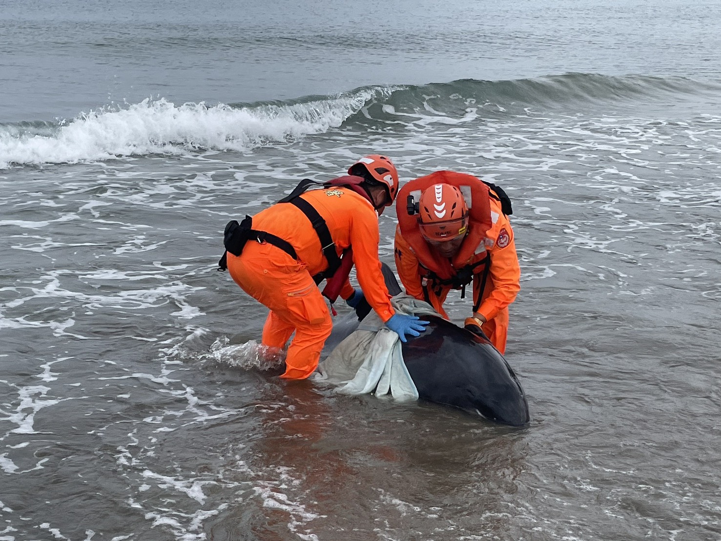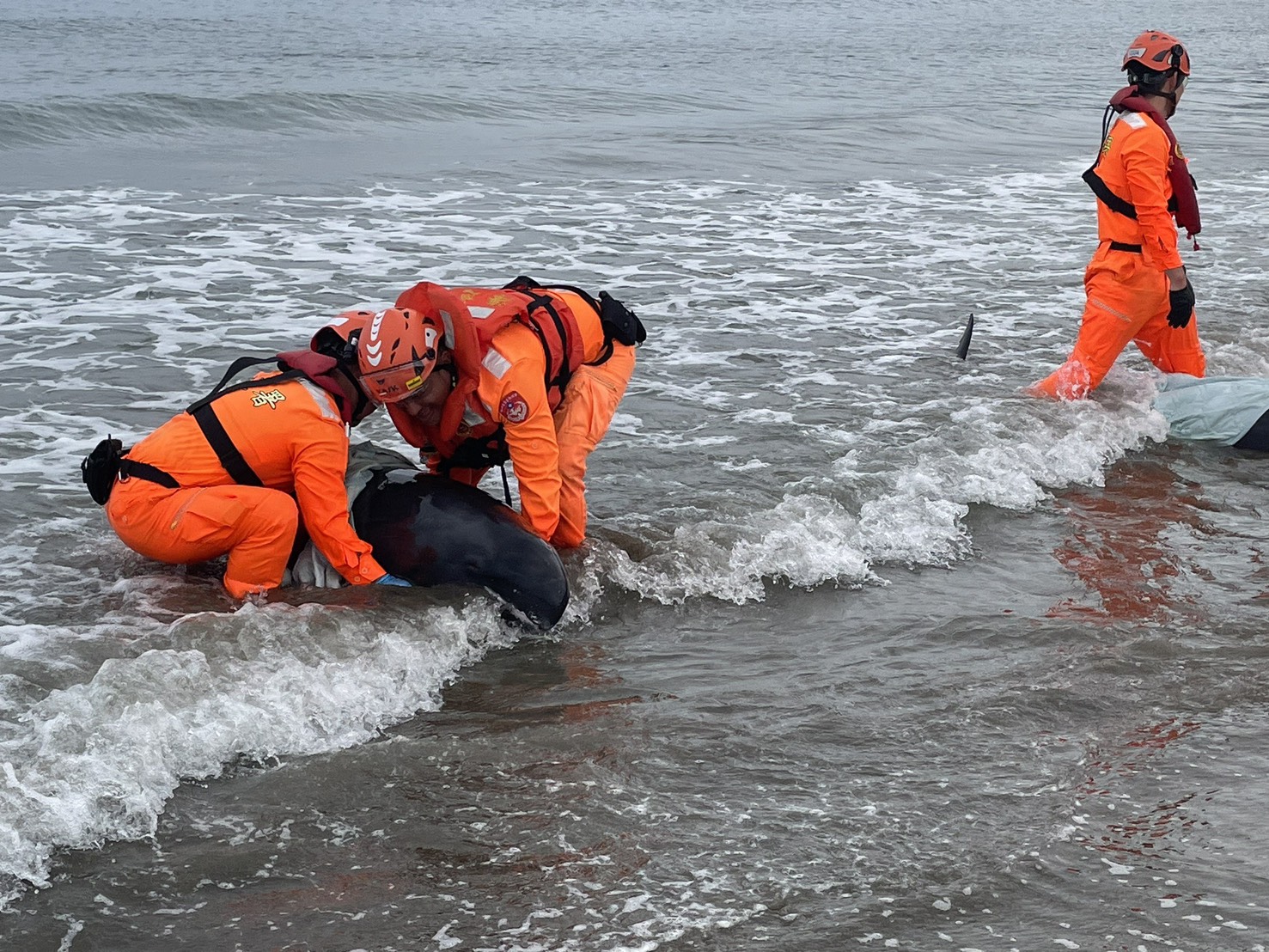 屏東車城驚見小虎鯨集體擱淺 海巡緊急趕赴協處