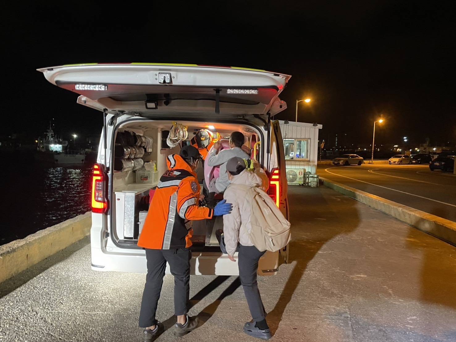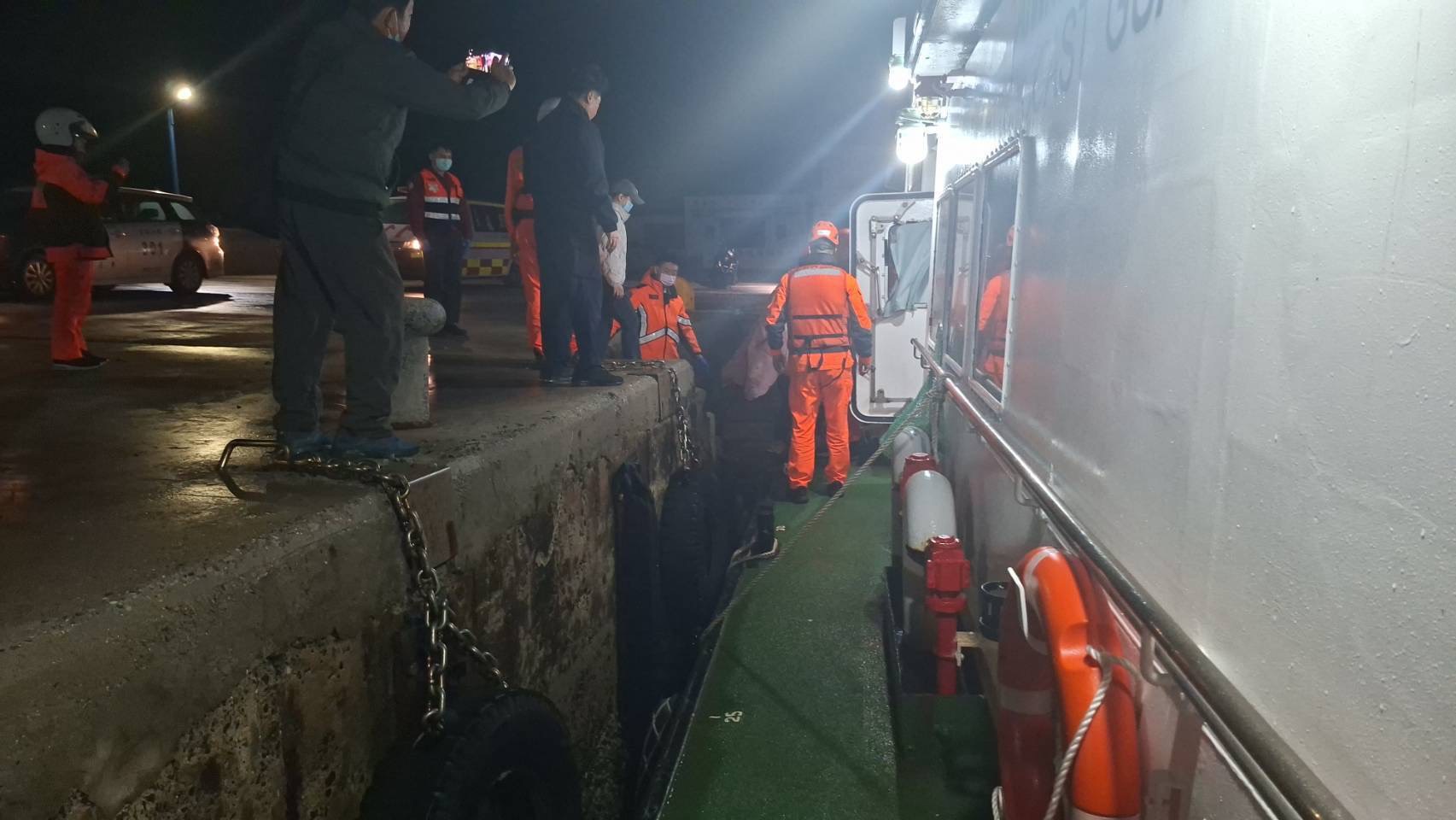 10038艇長考量望安將軍漁港港區狹窄,巡防艇無法於港內廻轉,於前往救援途中協調漁船將傷患先行送往潭門漁港,以利人員接駁,23時45分10038艇抵達潭門漁港後順利將病患接駁上艇後,隨即航返馬公港,並於本(11)日凌晨00時55分自行走上消防局救護車送往三軍總醫院澎湖分院就醫。