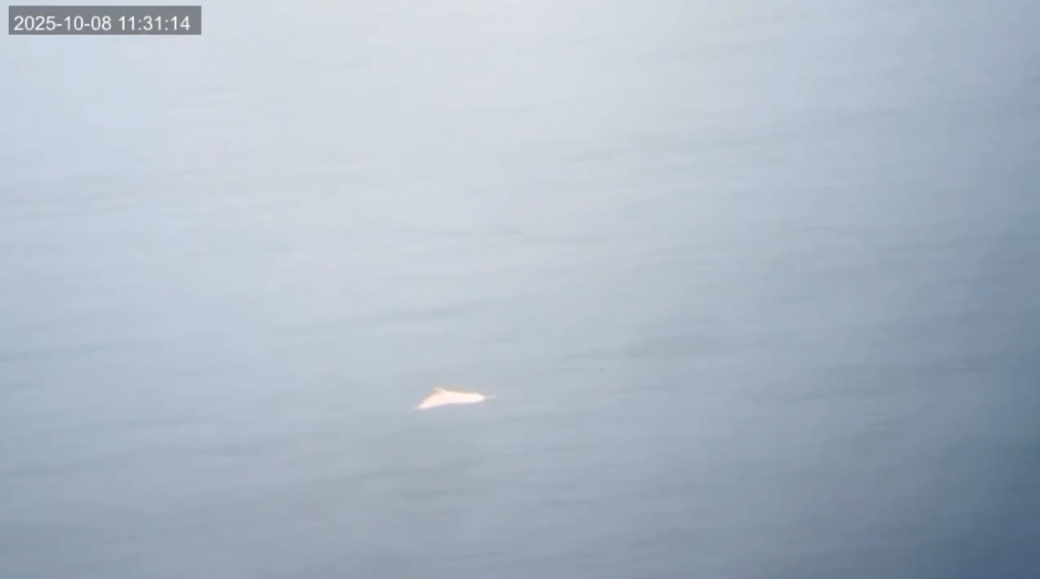 縣市:苗栗縣日期時間:114年10月08日11時31分發現地點:N24.61164° E120.725312°福寧守望哨前方距岸約400公尺處發現數量:中華白海豚1隻紀錄成果:影像檔3張影片檔1份