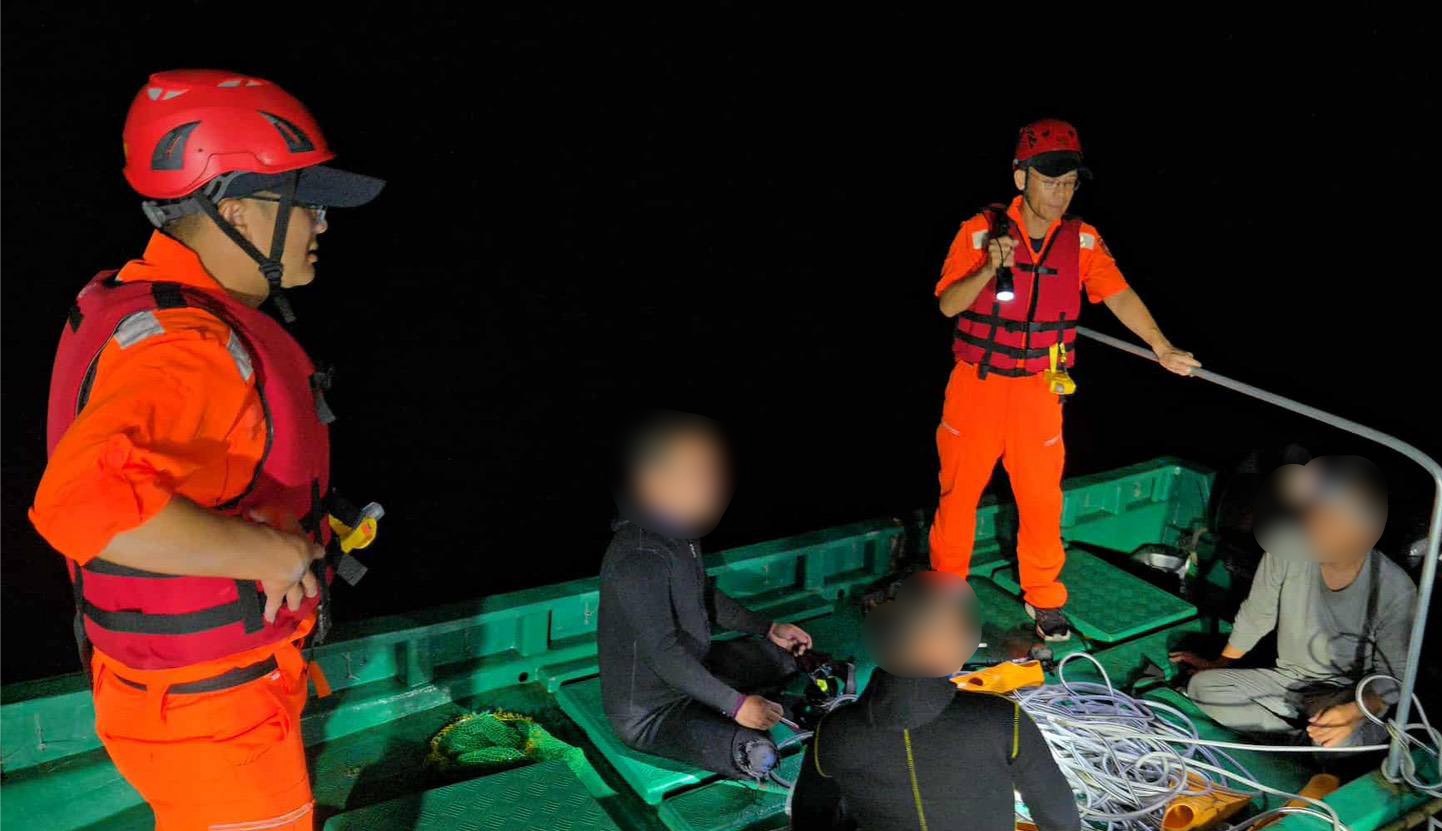 海巡署指出,繼12日於東沙水域登檢查扣小舟1艘並驅離陸船,僅隔1日安寧東沙又迎來環保流氓騷擾,本次中國「粵台漁11689」漁船趁夜色越界進入東沙水域並布放小舟,企圖進入環礁違法捕撈,海巡署再度調度優勢艦艇包抄,並於昨(14)日2209時成功登檢查扣中國小舟1艘,並強勢將「粵」船驅趕至我東沙水域外,展現海巡堅定守護東沙海域的決心。