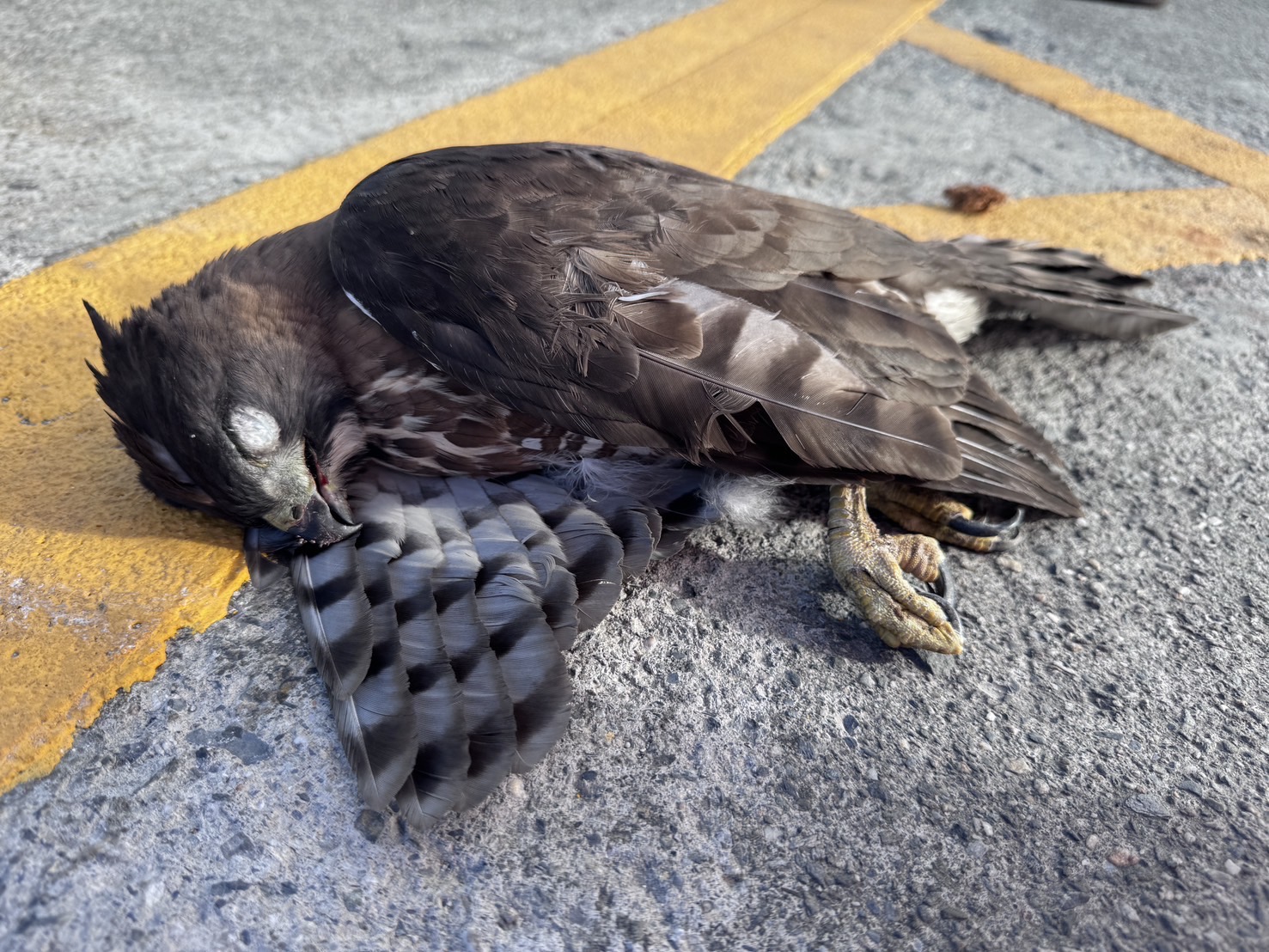今(17)日上午9時,伽藍安檢所人員執行客檢勤務時,於富岡漁港客輪碼頭發現並拾獲1隻受傷猛禽。