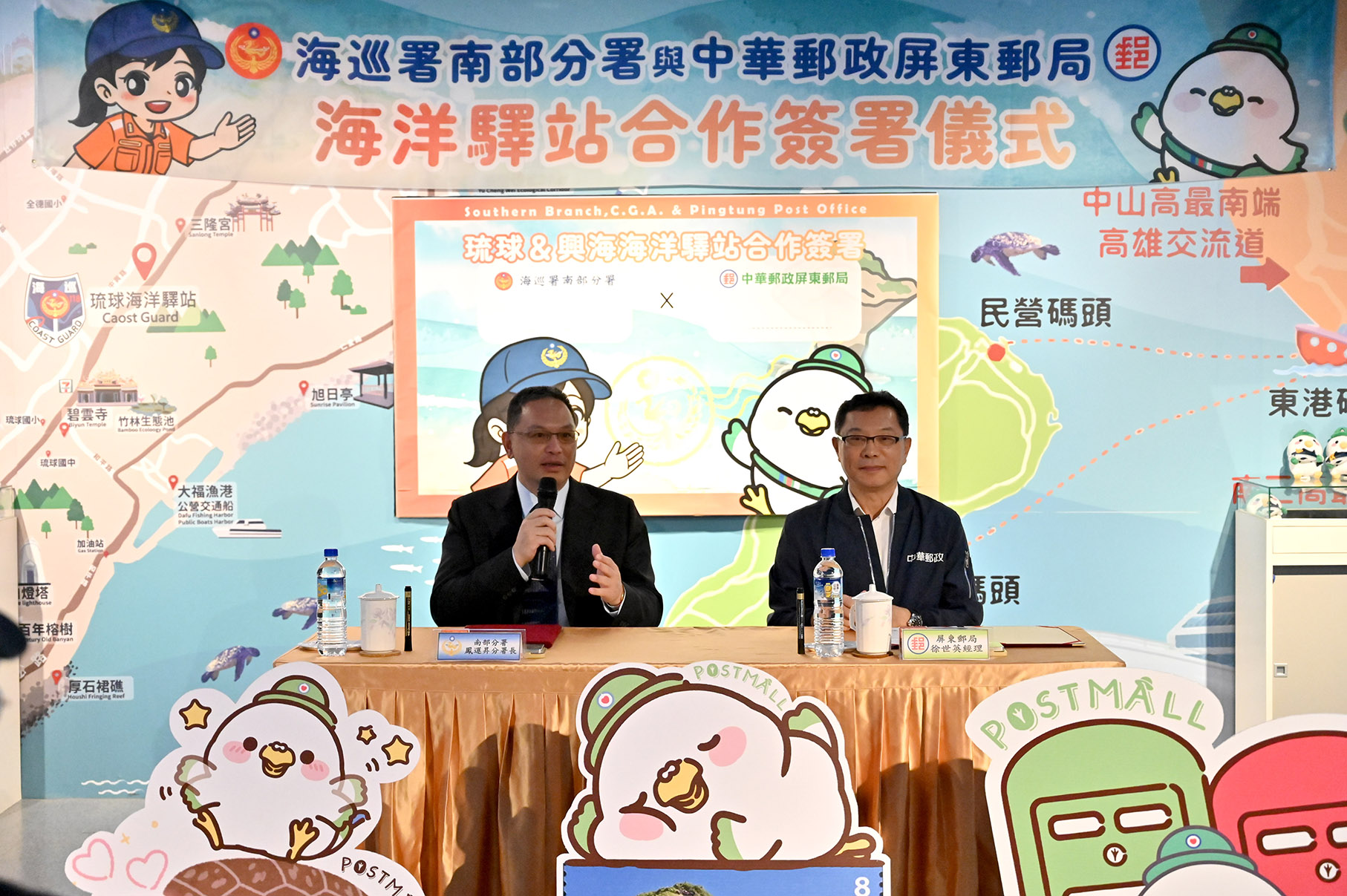海巡署南部分署與中華郵政屏東郵局今(18)日於小琉球舉行簽約儀式,正式展開與琉球及興海海洋驛站合作,這是海巡署與郵政體系首次於離島展開合作,結合雙方特色資源,推動海洋教育與文化的新模式。