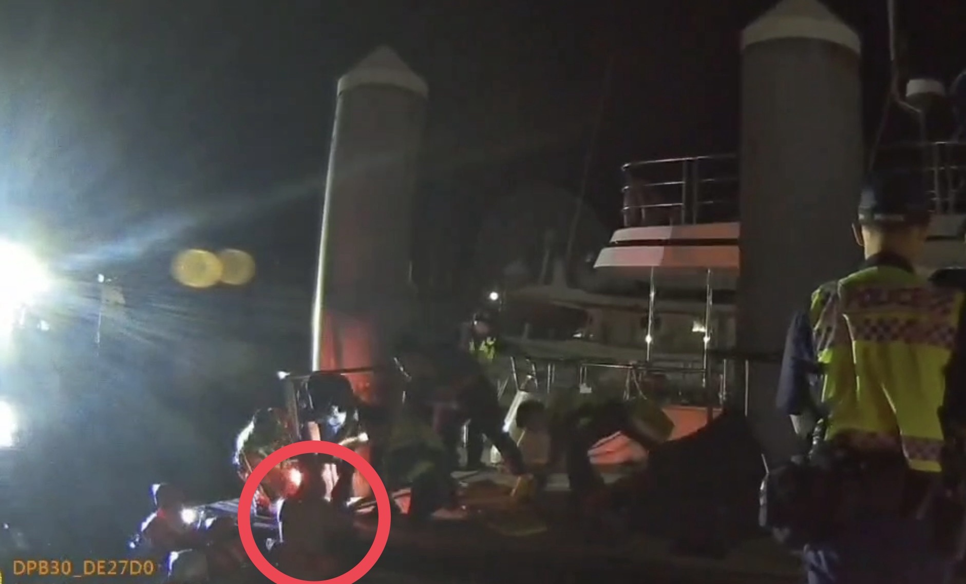 22時許,搜救人員於梧棲港港區觀光娛樂船浮動碼頭發現該男子時,男子突然情緒激動跳入海中,海巡人員立即下水救援,順利將其拉回岸際,救護人員評估男子有失溫情況,送醫檢查後無大礙,所幸未釀成憾事。
