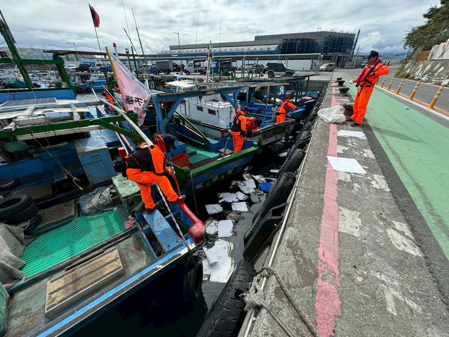 富岡港區發現海面油污,海巡即時應變防止擴散