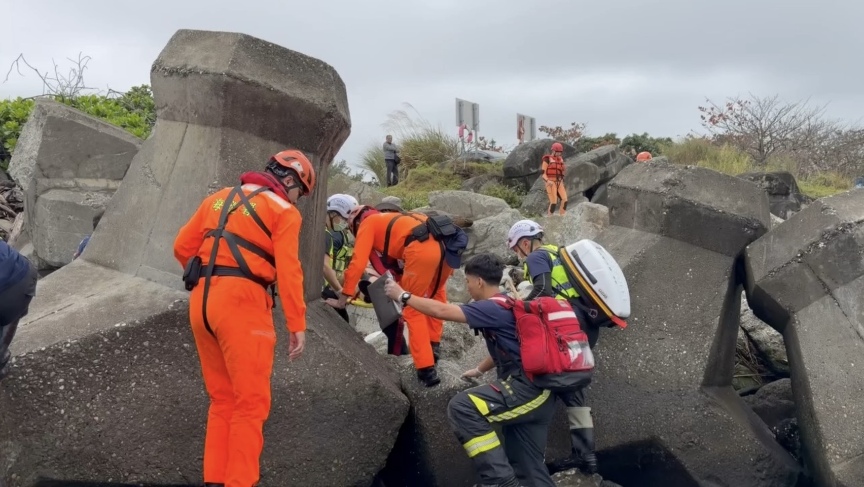 海巡人員抵達現場後,協同現場衝浪民眾將落海民眾(男性、花蓮人、61年次)救援上岸,並由海巡人員及消防人員實施CPR急救,後送門諾醫院搶救。