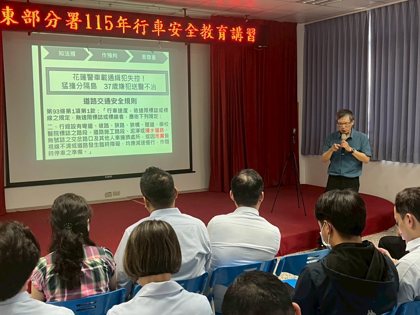 為提升同仁交通安全意識、降低執勤及通勤期間的交通事故風險,東部分署於昨(23)日特別舉辦「115年度行車安全教育講習」。本次講習旨在透過專業案例分析與法規宣導,建立同仁「防衛駕駛」的核心觀念,確保同仁在公務出勤及日常通勤時的人身安全。