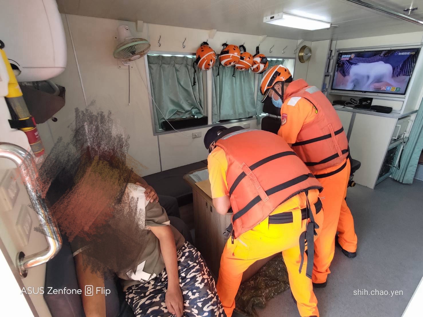 接獲通報後,海巡隊立即調派線上巡防艇3559艇前往支援,惟考量該船持續北上航行及救援時效,隨即加派距離較近之枋寮駐地3518艇緊急出勤,3518艇於15時9分在枋寮外海約4浬處成功接駁傷患及陪同人員上艇,並即刻返航。經海巡人員初步觀察該名漁工出現嘴唇發白、意識不清及四肢無力等症狀,隨即通報岸上單位預備救護。於15時21分安全進港後,迅速將傷患交由救護人員送往枋寮醫院接受進一步治療。