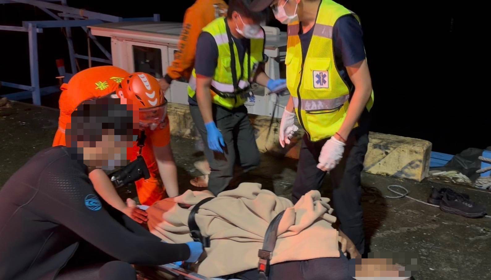 經初步了解,該民眾因天色昏暗,於港區行走時不慎落海,本隊接獲通報後,立即指派金樽安檢所人員攜帶救生裝備趕赴現場實施救援。抵達現場後發現溺者距岸約10公尺處載浮載沉,隨即下水實施救援,並順利將落水民眾拖帶至停靠港區漁船上,同時通報臺東縣消防局成功大隊東河消防分隊及臺東縣警察局成功分局東河分駐所前往協處。落海民眾為男性,年約60歲,經救護人員實施檢傷後為右手手指有擦傷情形,意識清楚,後續由本隊同仁協助攙扶上救護車,送往衛生福利部臺東醫院成功分院檢查。