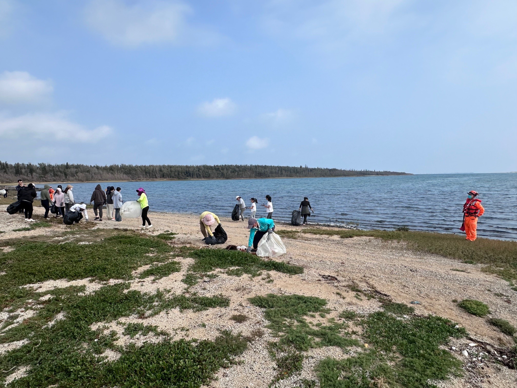 澎湖縣政府農漁局為提升湖西鄉環境品質,凝聚居民維護環境向心力,還給海岸沙灘潔淨美麗的自然風貌,於115年3月29日(星期日)8時40分至9時10分,假紅蘿西港岸際辦理淨灘活動,海巡署金馬澎分署第七岸巡隊為展現海洋環境保育之重視參與淨灘活動,活動當日計有澎湖縣政府農漁局、海洋委員會海巡署金馬澎分署第七岸巡隊、紅蘿村居民等單位動員50員共同參與,清理各式海岸垃圾計115公斤(一般垃圾80公斤及資源垃圾35公斤),有效維護海洋生態及海岸環境。