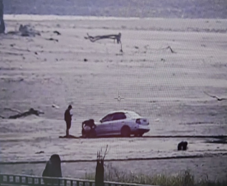 2日下午,溫寮安檢所守望人員運用紅外線熱影像系統巡查大安海域岸際,發現一輛銀色轎車疑似受困,旋即通報線上巡邏人員前往現地查處,海巡人員到場發現該車輛陷於沙泥地中,無法自行脫困,立即協調當地友好業者以挖土機拖帶車輛,並以人力輔助推行,順利協助車輛脫困開返岸際,駕駛溫先生感謝海巡人員即時協助,整起事件圓滿落幕。