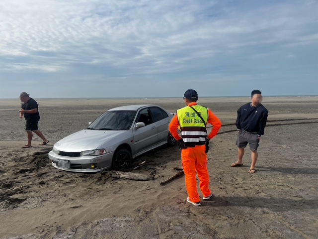 今(2)日14時許,海巡署中部分署第三岸巡隊溫寮安檢所運用科技裝備「紅外線熱影像系統」查看大安海域岸際,發現一輛銀色轎車疑似受困,立即派遣人員前往查察,並協調當地業者以拖帶方式,順利協助車輛脫困開返岸際。