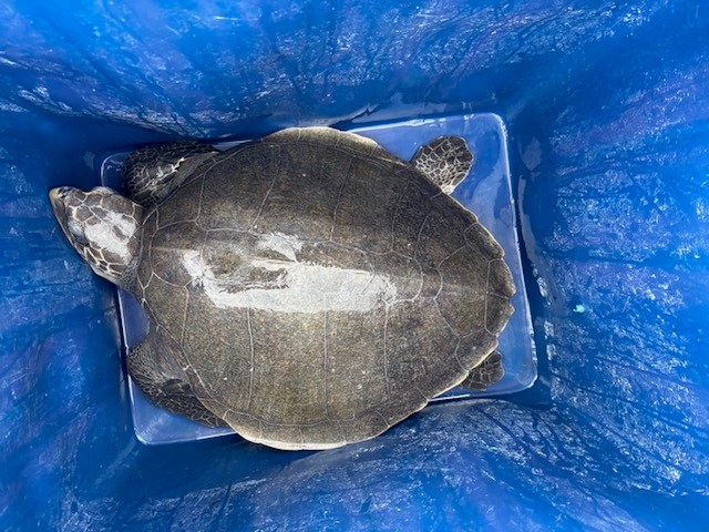 今(10)日上午09時00分,海巡署第十巡防區指揮部接獲三和安檢所轉定置漁場業者通報,於三和定置漁場內發現活體欖蠵龜1隻,請本署協處。