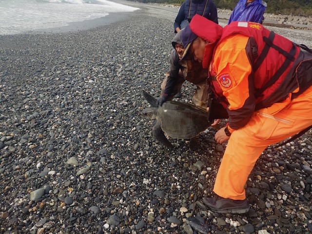漁友暖心接力、海巡即刻守護,受困欖蠵龜重返大海